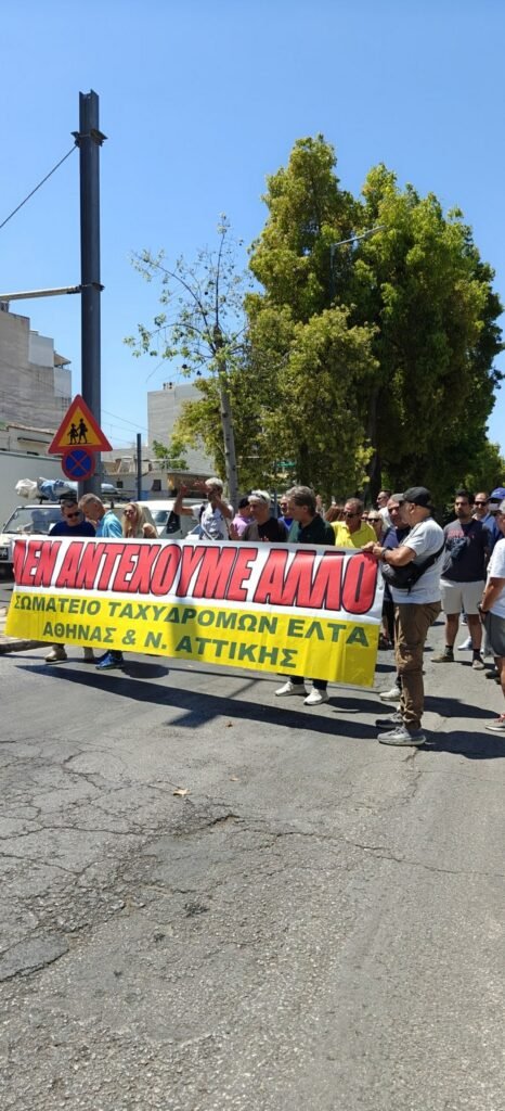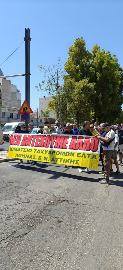 Από τη Τρίωρη στάση εργασίας τη Τετάρτη 9 Ιουλίου 2025 και τη διαμαρτυρία των συναδέλφων της Κ.Μ.Δ Αθήνας 10 στην οδό Κωνσταντινουπόλεως μαζί με το Προεδρείο του Σωματείου Ταχυδρόμων ΕΛΤΑ Αθήνας και Νομού Αττικής.