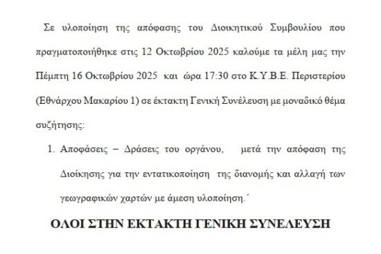Από την Έκτακτη Γενική Συνέλευση του Σωματείου μας, όπου ΟΜΟΦΩΝΑ αποφασίστηκαν απεργιακές κινητοποιήσεις.